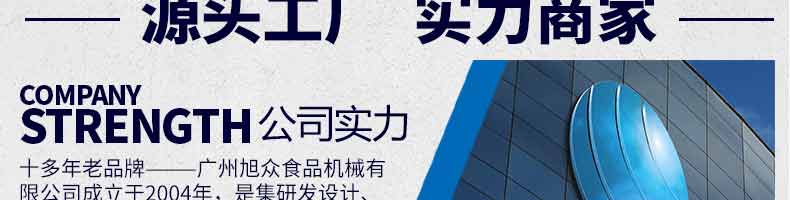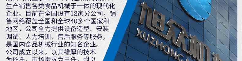 廣州旭眾食品機(jī)械有限公司是一家集科研開發(fā),生產(chǎn)設(shè)計(jì),營銷服務(wù)為一體的現(xiàn)代化生產(chǎn)企業(yè)。現(xiàn)代化生產(chǎn)車間,精湛制造技術(shù),所產(chǎn)機(jī)械歷經(jīng)市場重重考驗(yàn),不斷贏得海內(nèi)外客戶的贊譽(yù)。