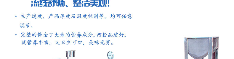 SZ-HF-80高效節(jié)能河粉機,用高效節(jié)能河粉機生產(chǎn)的河粉,完整保全了大米的營養(yǎng)成分,河粉品質一流,既營養(yǎng)豐富,又衛(wèi)生可口、美味無窮。