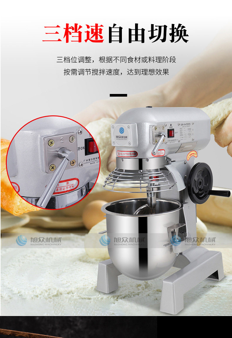 SZM-10A攪拌機(jī),三檔速自由切換。三檔位調(diào)整,根據(jù)不同食材或料理階段按需調(diào)節(jié)攪拌速度,達(dá)到理想效果。強(qiáng)勁動力,源于強(qiáng)芯配置純銅電機(jī),滿足高強(qiáng)度需求,堅(jiān)固耐用大功率電機(jī),澎湃動力,和面有力更均勻。