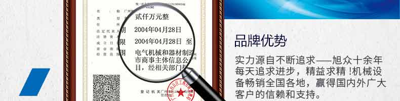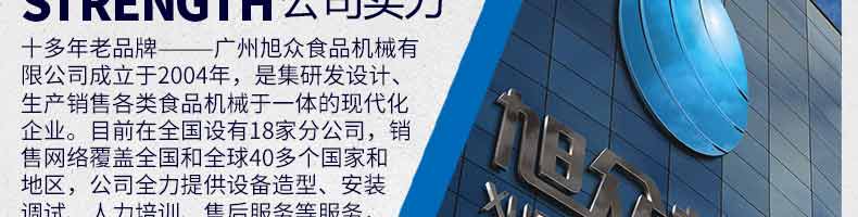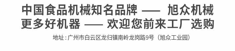 廣州旭眾食品機(jī)械有限公司是一家集科研開(kāi)發(fā),生產(chǎn)設(shè)計(jì),營(yíng)銷(xiāo)服務(wù)為一體的現(xiàn)代化生產(chǎn)企業(yè)。現(xiàn)代化生產(chǎn)車(chē)間,精湛制造技術(shù),所產(chǎn)機(jī)械歷經(jīng)市場(chǎng)重重考驗(yàn),不斷贏得海內(nèi)外客戶的贊譽(yù)。
