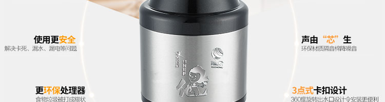 DCLQ40-廚房垃圾處理器,該機是一種現(xiàn)代化的廚房電器,它用全新的方法來處理現(xiàn)代家庭中的食品廢物。處理器裝于廚房水槽下,能夠有效地將食物垃圾研磨成細小顆粒,直接從下水管道排出,從而輕松實現(xiàn)及時方便快捷的廚房清潔,優(yōu)化家居環(huán)境。