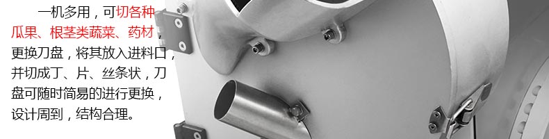 XZ-680A多功能切菜機(jī),一機(jī)多用,可切葉菜及根莖類蔬菜,并可切片、絲、條、丁、段,碎等,切菜規(guī)格可根據(jù)不同需要調(diào)節(jié)尺寸,方便快捷。隨機(jī)共配送三套刀具。