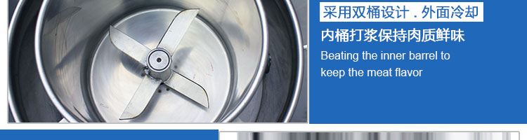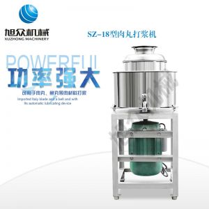 SZ-18型肉丸打漿機,本機裝肉用桶子采用不銹鋼制造,達到衛(wèi)生要求,肉桶外罩和桶底裝有冷卻裝置,確保肉漿新鮮。比手工的打漿更精細,所產(chǎn)肉丸、魚丸彈性好,色澤潔白。