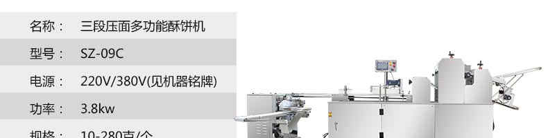 SZ-09C三段壓面蘇式月餅機,生產(chǎn)速度、制品大小、重量、皮餡比例可隨時調(diào)整、變更。適用于蘇式月餅、綠豆餅、老婆餅、蔥油餅、鮮花餅、肉松餅、金華酥餅等。適用于大、中型糕餅生產(chǎn)廠家,免費提供工藝技術(shù)。