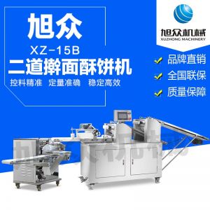 xz-15B二段酥餅機,生產速度快、效率高、生產流程流暢,各環(huán)節(jié)都輔以精密電控設備控制,不會出現(xiàn)堵面、破酥等現(xiàn)象??缮a蘇式月餅、肉松餅、老婆餅、廈門餡餅、金華酥餅、拉絲面包等等特色酥餅,適用于大、中型糕餅生產廠家,免費提供工藝技術。